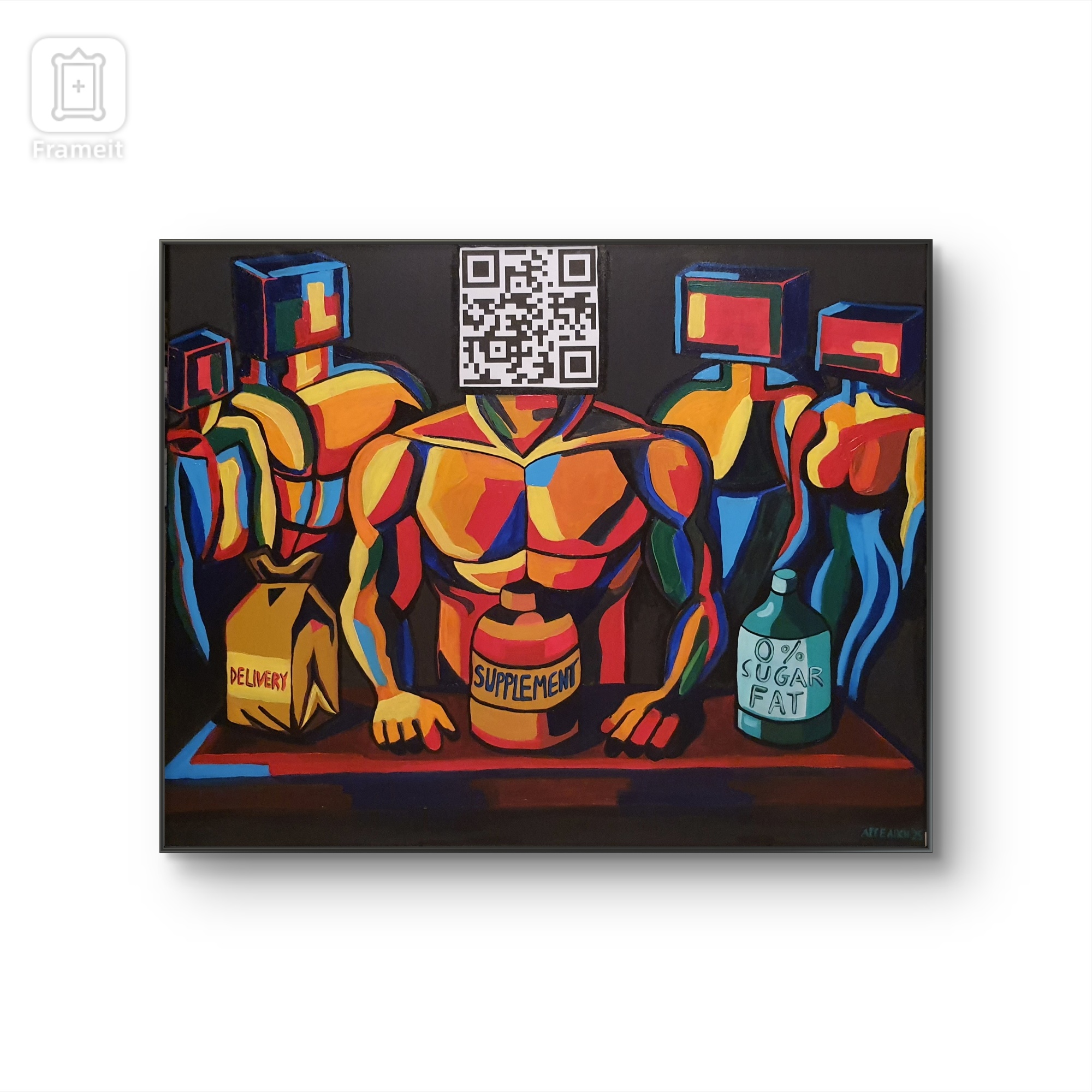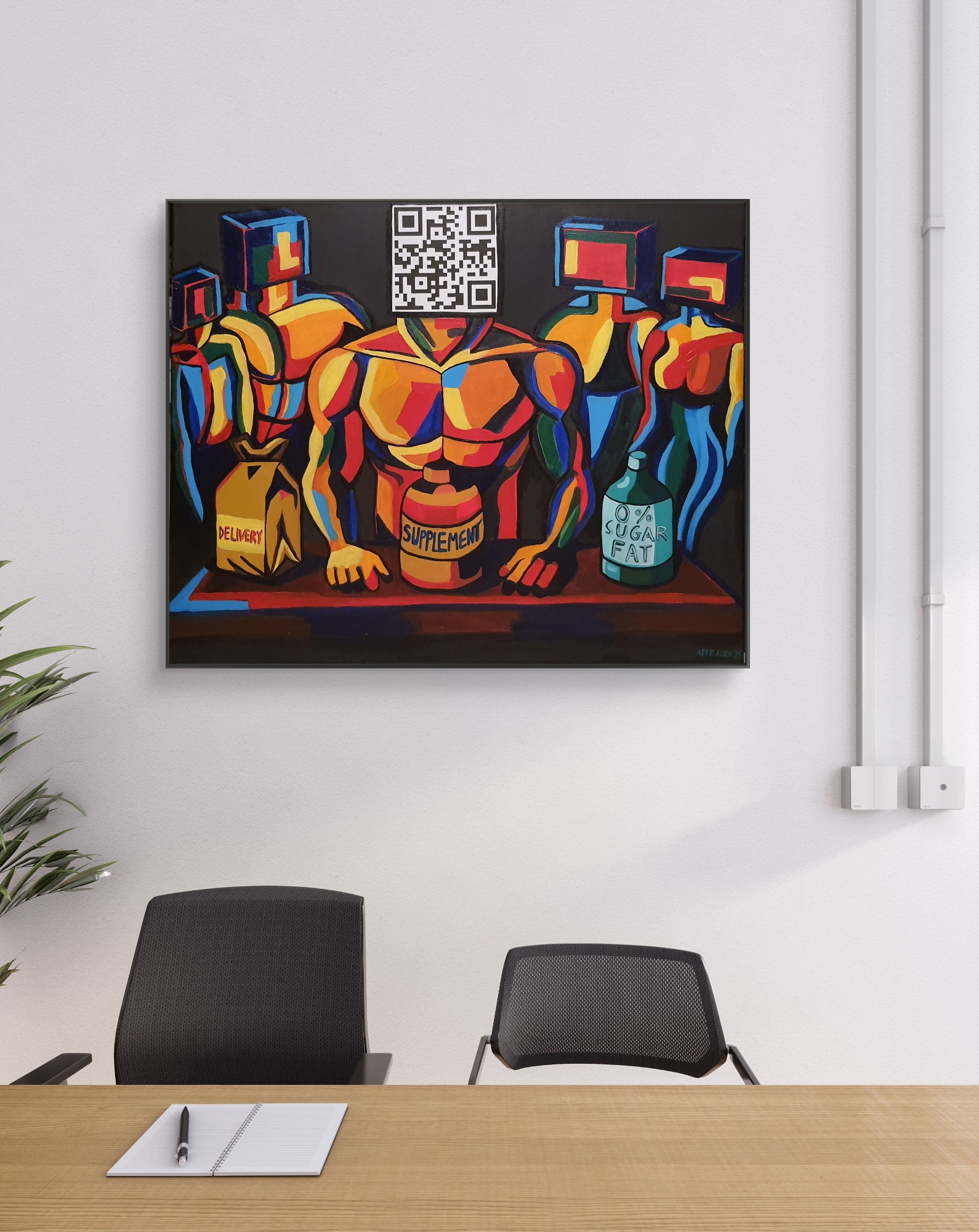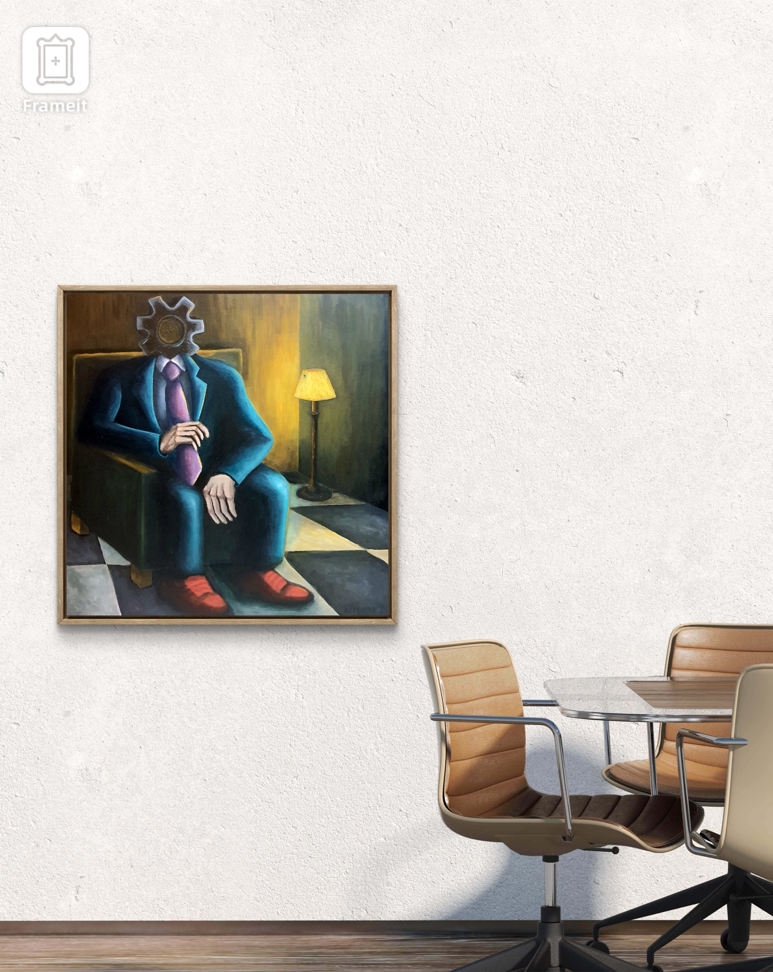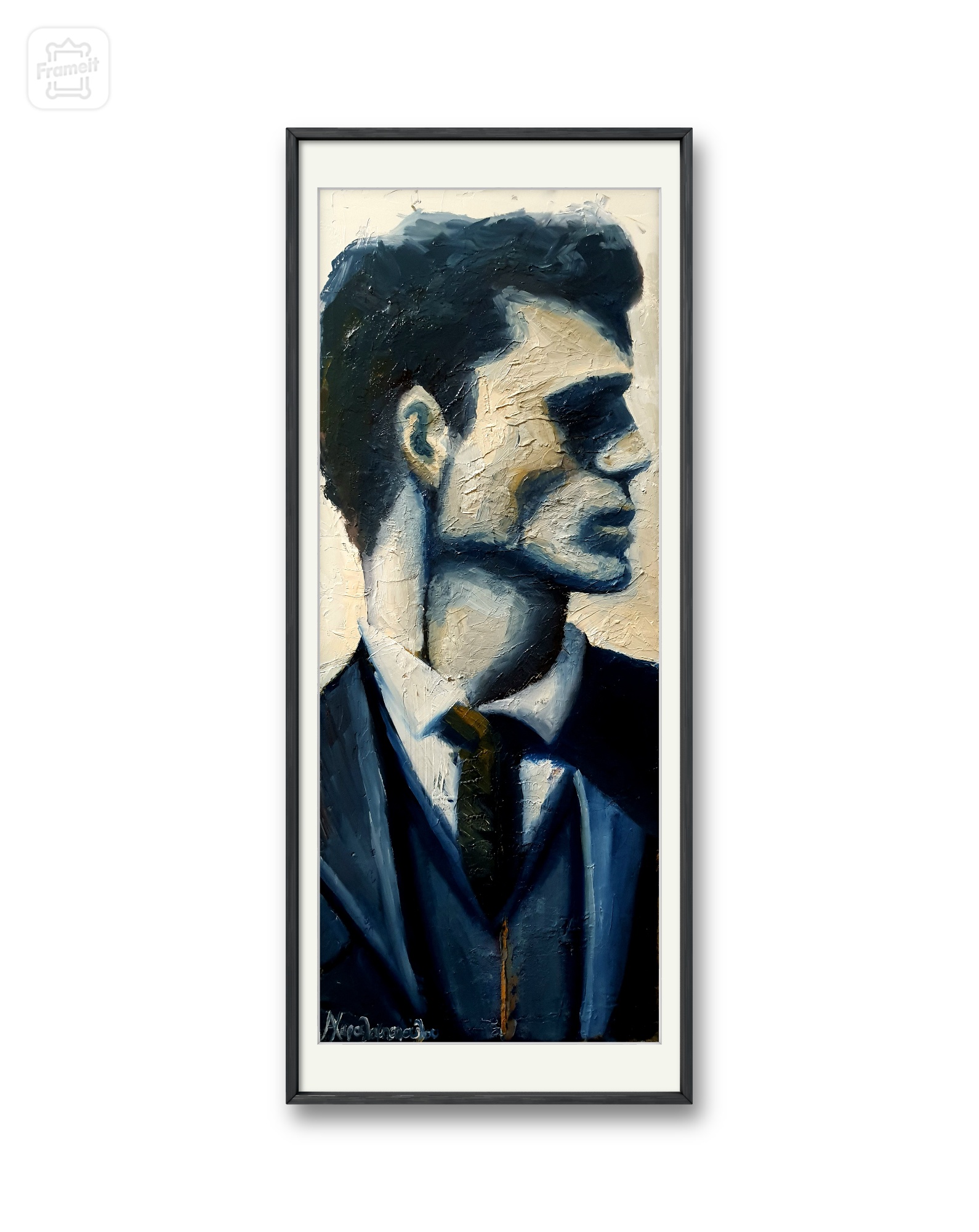 Across the trilogy, we witness his gradual collapse into artifice and mechanism. The three paintings trace the erosion of identity under performance pressure: the man, the mask, and the machine. Through expressionist distortion and psychological lighting, the series examines what remains of the self when the face dissolves, when the role becomes permanent, and when the human is replaced by function.