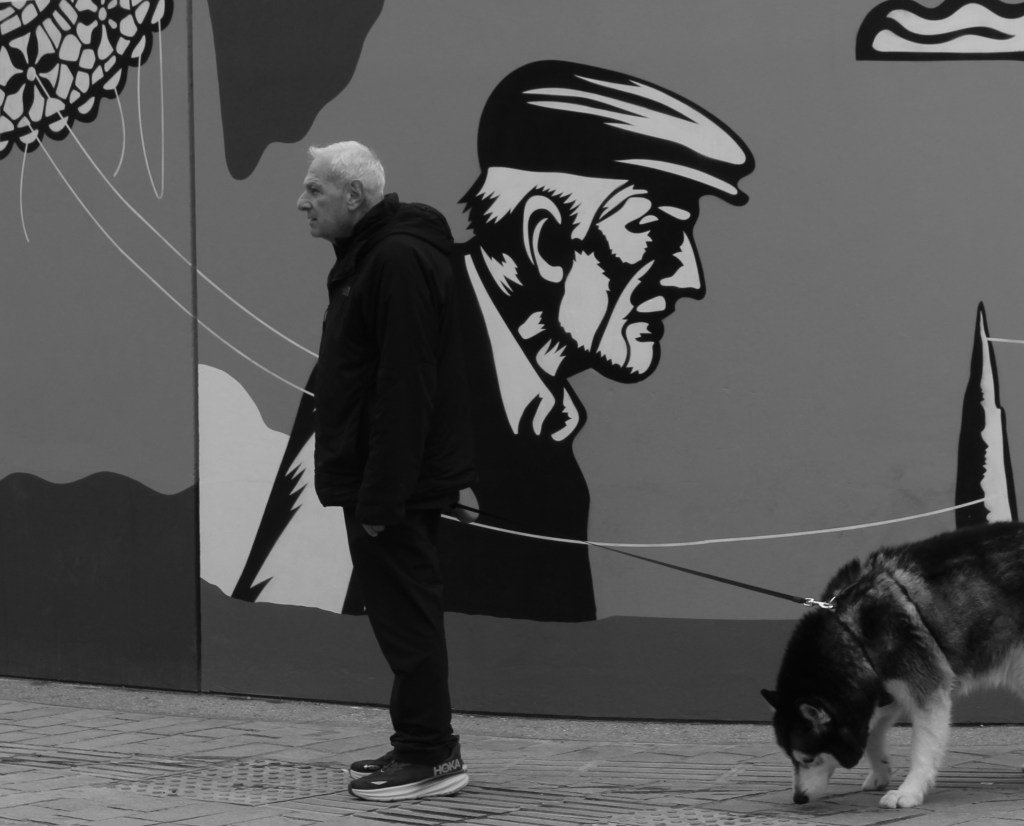 A personal tribute, Lady and the Husky was created as a gift for my sister. Painted in acrylics, the piece employs sfumato techniques to achieve a seamless, soft gradient effect, enhancing the depth and atmosphere of the composition.
